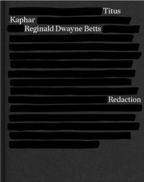 Kaphar (with fellow MacArthur grant recipient and poet Reginald Dwayne Betts) has a gorgeous (and large) book out, Redaction, based on an exhibit in New York City. Below is the book cover, and below that — with the permission of my publisher, Riverhead Books — I’ve reprinted Titus’s development story from the Range afterword. I hope you enjoy.